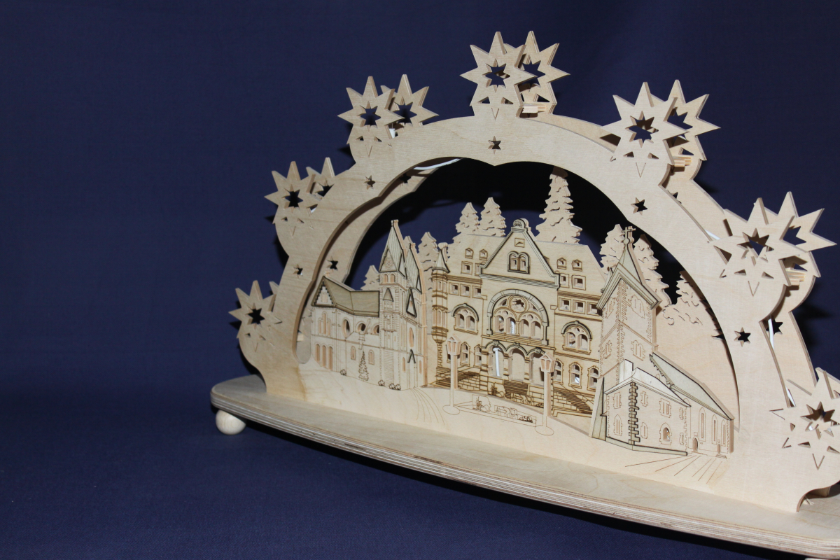 Unsere Schwibbögen und Dekoartikel werden aus Holz hergestellt. Wie Sie sich vorstellen können, ist Holz ein Naturprodukt und kann demzufolge Abweichungen in Farbe und Struktur aufweisen. Auch gehören trotz sorgfältigster Auswahl, eventuell vorhandene Äste zu dem Werkstoff Holz dazu.